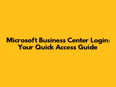 Logging into the Microsoft Business Center should now be a piece of cake for you. By following this guide, you can easily access your account, troubleshoot common issues, and ensure a smooth experience. Keep these tips handy, and you’ll be managing your Microsoft services like a pro in no time!