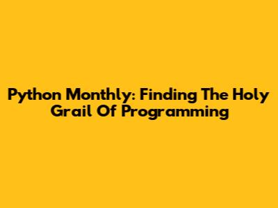 Python Monthly: Finding The Holy Grail Of Programming