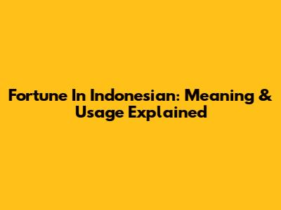 Fortune In Indonesian: Meaning & Usage Explained