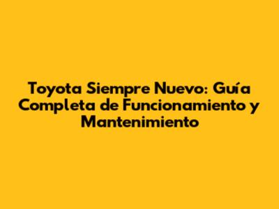¡Hola a todos los amantes de Toyota! Hoy vamos a sumergirnos en el fascinante mundo de "Toyota Siempre Nuevo". ¿Alguna vez se han preguntado cómo funciona este programa y cómo pueden aprovecharlo al máximo para mantener su Toyota como nuevo durante más tiempo? Pues, ¡están en el lugar correcto! En esta guía completa, desglosaremos todo lo que necesitan saber, desde el funcionamiento interno del programa hasta los mejores consejos para el mantenimiento preventivo. Prepárense para descubrir cómo mantener su Toyota siempre impecable y disfrutar de la experiencia de conducir un coche que siempre se siente como recién salido de la fábrica. ¡Vamos a ello!